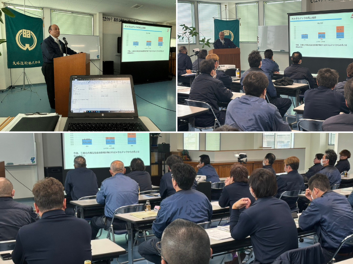 この度も、3ヶ月に1度の研修会を開催し、2023年度の実績報告や2024年度の売上げ目標について詳細に議論を重ねました。