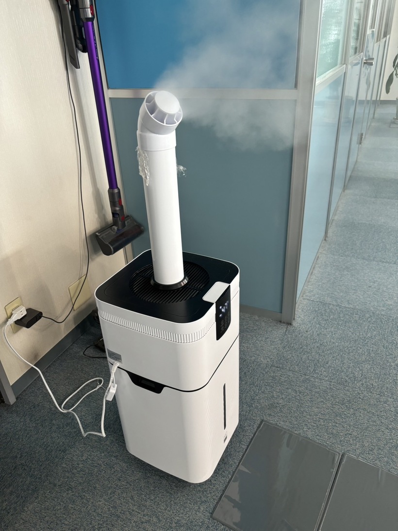 2024.12.18 空気清浄機&大型加湿器を導入しました 弊社ではコロナウイルス、インフルエンザ等のウイルス除去のために、医療機関でも使用されている空気清浄機を各フロアに導入し、乾燥時期に対応する大型加湿器も同時に導入しました。