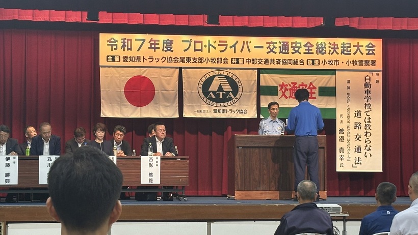 2025.07.07 トラック協会交通安全総決起大会に参加しました! 7月5日、「令和7年度トラック協会 交通安全総決起大会」に弊社管理者複数名にて参加いたしました。 改めて安全についての意識を持ち、今後も大昭運輸一同、安全第一に取り組んでまいります。